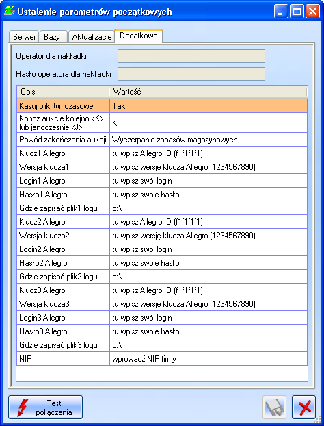 - W konfiguracji można ustawić max. 3 konta Allegro (w zależności