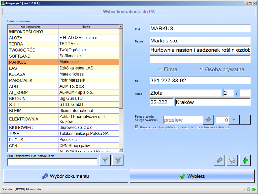 Bezpośrednio z nakładki można założyć nowych kontrahentów, będą oni