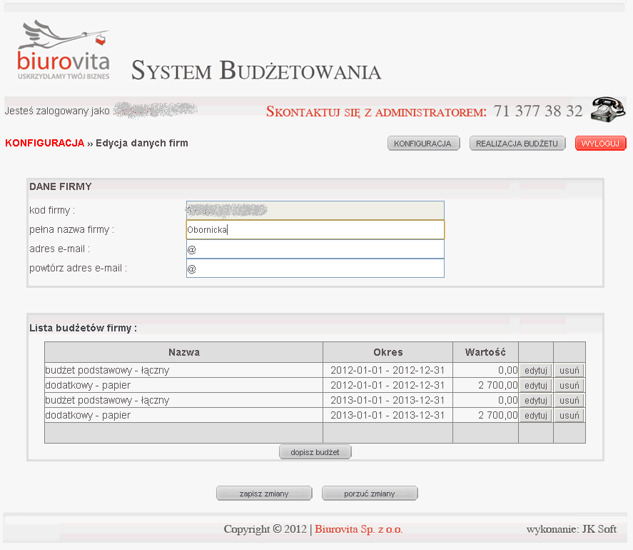 Fiskalizator 2 WWW Spr. stanów WWW Budget (budżet) Zlecenia